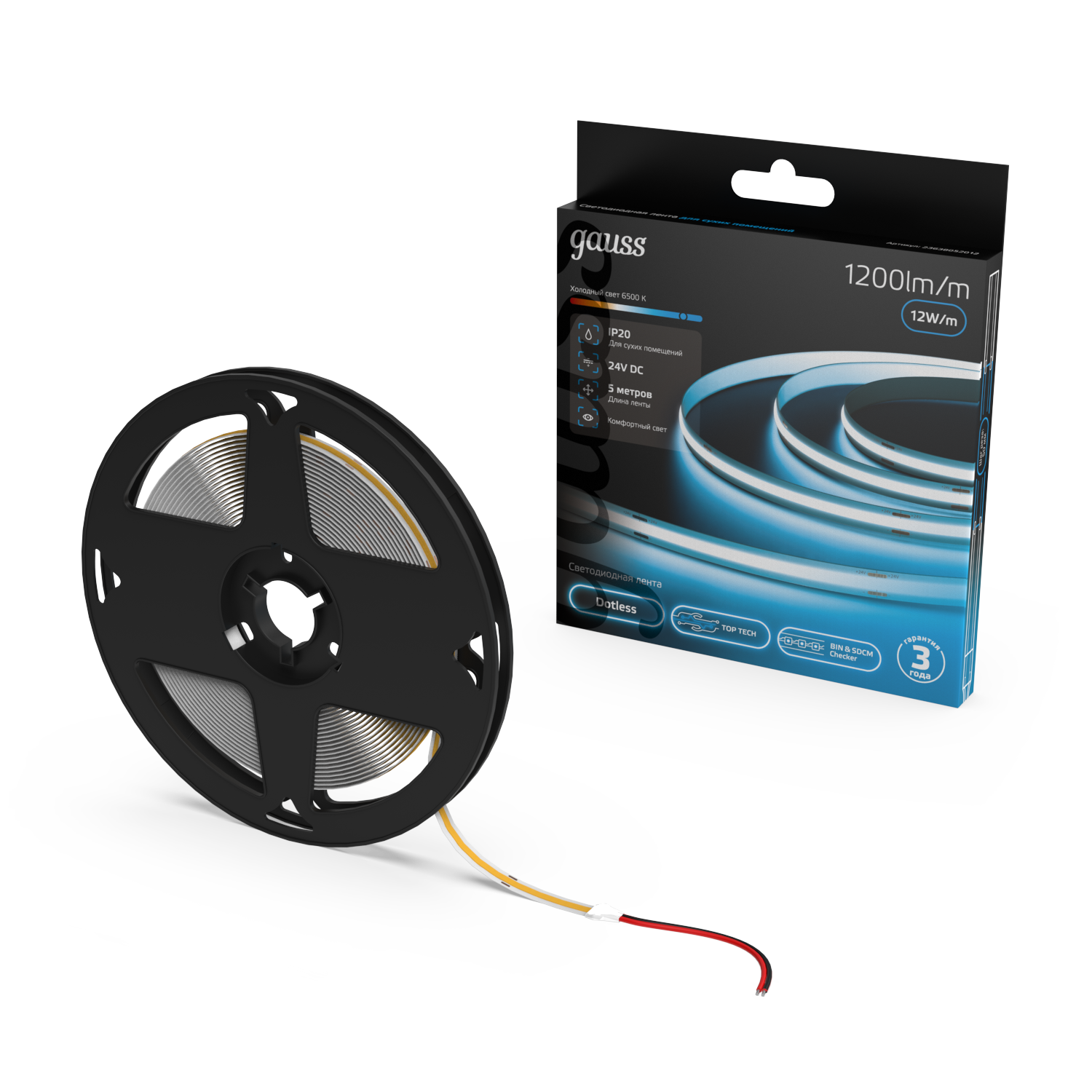 Лента Gauss COB 480 24V 12W/m 1200lm/m 6500K 8mm IP20 5m