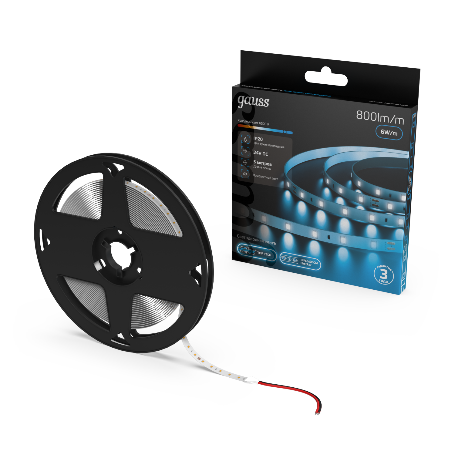 Лента Gauss LED 2835/60 24V 6W/m 800lm/m 6500K 8mm IP20 5m