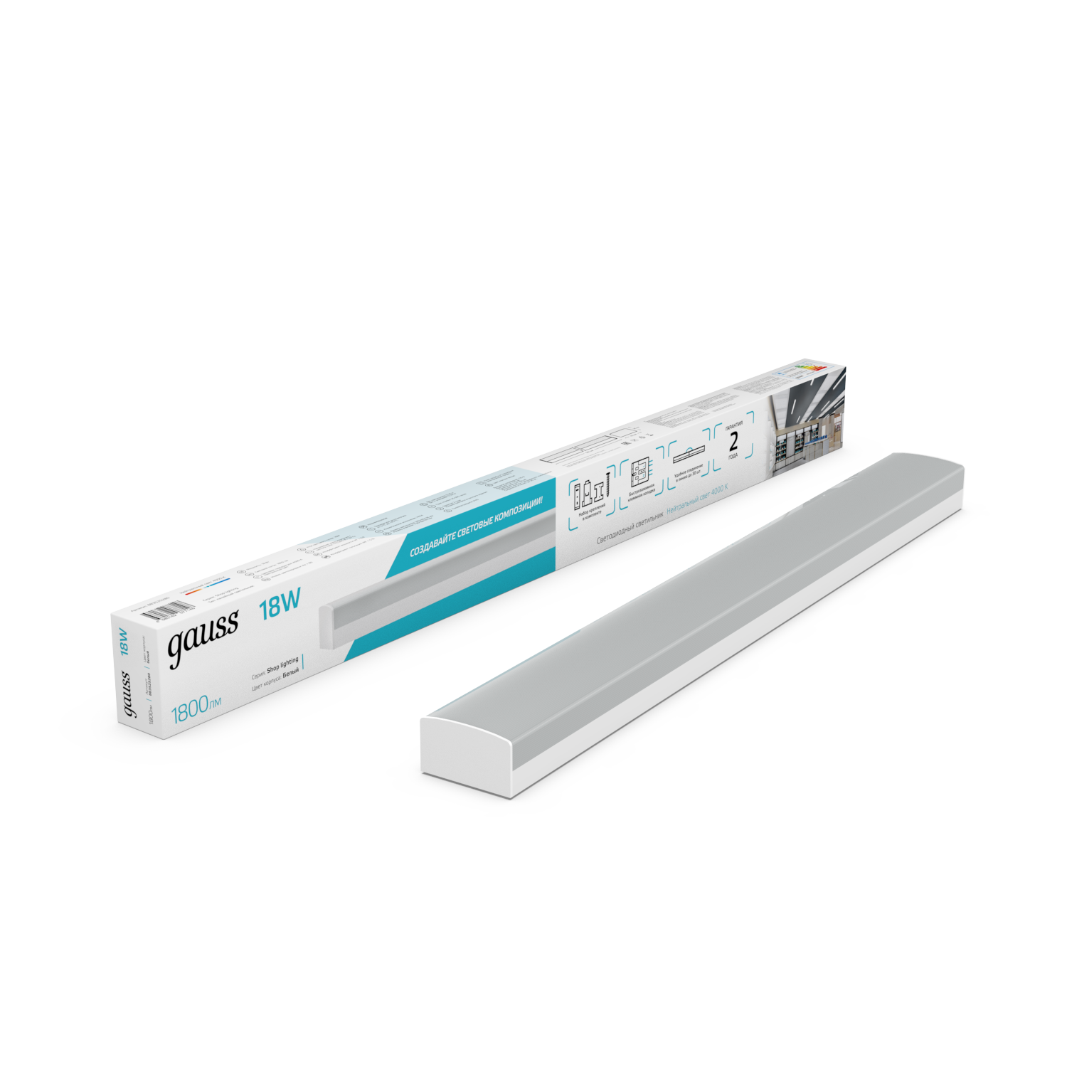 Св-к светодиодный матовый Gauss IP40 1180*70*55мм 48W 4600Лм 4000K Shop Lighting белый 1/12